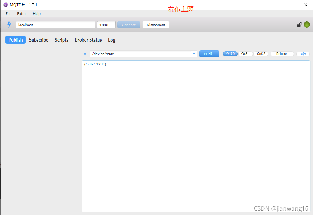 输入localhost和1883端口,即可连接到emqx服务器,如: