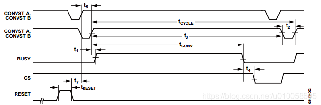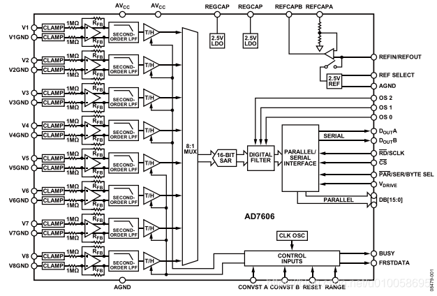 根据AD7606说明书配置AD7606工作于SPI串口模式,并短接CONVA和CONVB,实现8通道同步转换。