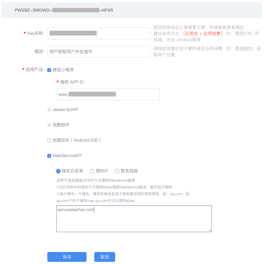 1、首先申请腾讯地图密钥key,特别要注意域名白名单的填写。