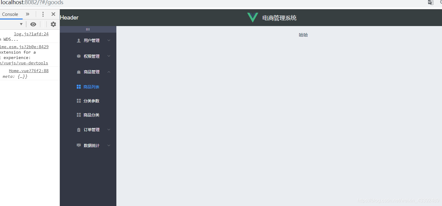 <template><div>哈哈<!-- 面包屑导航区 <el-breadcrumb separator-class="el-icon-arrow-right"><el-breadcrumb-item :to="{ path: '/home' }">首页</el-breadcrumb-item><el-breadcrumb-item>商品管理</el-breadcrumb-item><el-breadcrumb-item>商品列表</el-breadcrumb-item></el-breadcrumb><!-- 卡片视图 <el-card><el-row :gutter="20"><el-col :span="8"><el-input placeholder="请输入内容"><el-button slot="append" icon="el-icon-search"></el-button></el-input></el-col><el-col :span="4"><el-button type="primary">添加商品</el-button></el-col></el-row>--></div>