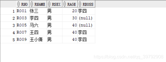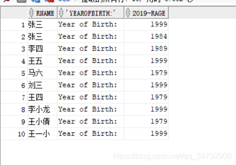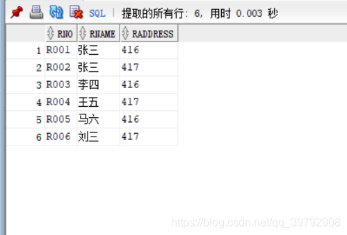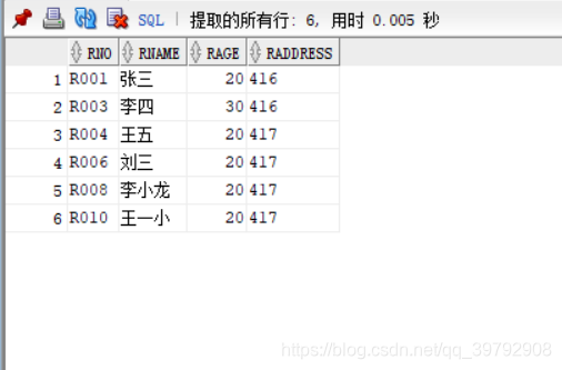 自身连接:select b.rname from reader a, reader b where b.raddress = a.raddress and a.rname = '李小龙' and b.rname != '李小龙';