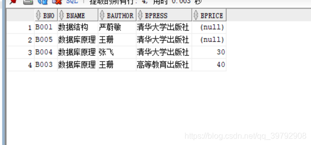 insert into book (BNO,Bauthor,Bname, bpress, bprice) values('B005','王珊','数据库原理','清华大学出版社',null);