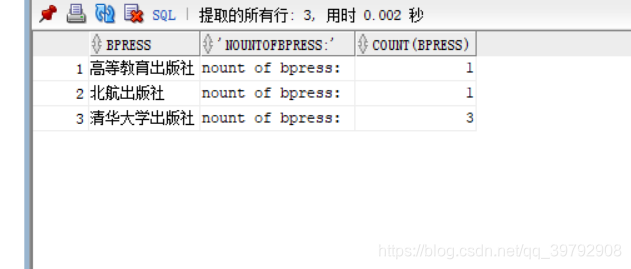 - 查询book中包含的各个出版社及其出版书籍的数量;