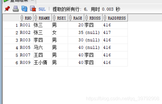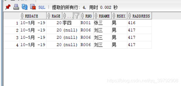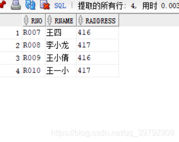 子查询:select RNAME from READER WHERE RADDRESS= (select RADDRESS from READER where rname='李小龙');