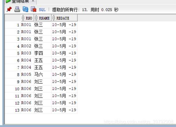 | Rname | varchar2 | 10 | 否 | 员工姓名 |