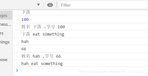 }class Teacher extends Prople {constructor(name, major) {super(name);this.major = major;}teach() {console.log(`姓名 ${this.name} .学号 ${this.major}`)}