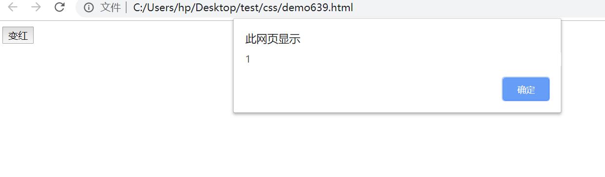 </head><body><!-- 点击按钮 弹出1 --><input type="button" value="变红" id="btn"></body></html>