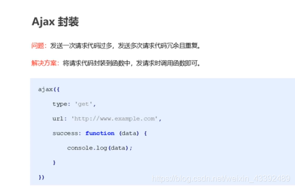 </head><body><script>function ajax(options) {//创建ajax对象var xhr = new XMLHttpRequest();//配置ajax对象xhr.open(options.type, options.url);//发送请求xhr.send();//触发xhr.onload = function() {console.log(xhr.responseText);options.success();}}ajax({type: 'get',url: 'http://localhost:3000/responsdate',success: function(data) {console.log(data);}})</script>