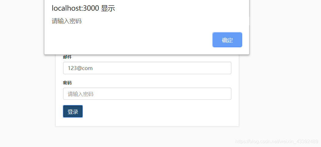</head><body><div class="login-body"><div class="login-container"><h4 class="title">黑马程序员 - 博客管理员登录</h4><div class="login"><form action="/admin/login" method="post" id="loginForm"><div class="form-group"><label>邮件</label><input name="email" type="email" class="form-control" placeholder="请输入邮件地址"></div><div class="form-group"><label>密码</label><input name="password" type="password" class="form-control" placeholder="请输入密码"></div><button type="submit" class="btn btn-primary">登录</button></form></div><div class="tips"></div></div></div><script src="/admin/lib/jquery/dist/jquery.min.js"></script><script src="/admin/lib/bootstrap/js/bootstrap.min.js"></script><script src="/admin/js/common.js"></script><script type="text/javascript">// 为表单添加提交事件$('#loginForm').on('submit', function () {// 获取到表单中用户输入的内容var result = serializeToJson($(this))// 如果用户没有输入邮件地址的话if (result.email.trim().length == 0) {alert('请输入邮件地址');// 阻止程序向下执行return false;}// 如果用户没有输入密码if (result.password.trim().length == 0) {alert('请输入密码')// 阻止程序向下执行return false;}});</script>