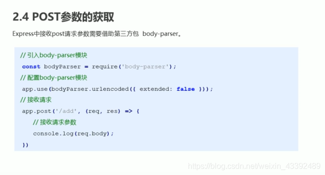 app.use(bodyParser.urlencoded({ extends: false }))app.post('/add', (req, res) => {res.send(req.body);