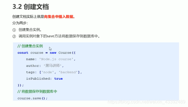 const course = new Course({name: 'node.js',author: 'geyao',isPublished: true