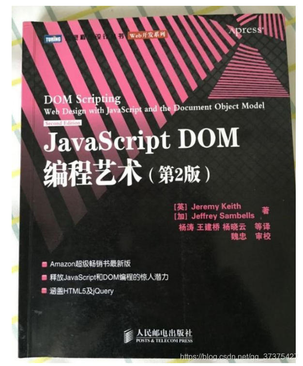 理由:此书绝对是入门的好书,本人也是在接触JS一段时间后才看的这本书。此书从JS的历史 – JS基础语法知识 – DOM介绍和简单的使用。现在这本书已经出了第二版,需要的朋友直接第二版就行。 评价:简洁,实用,详细,易懂,书不厚,相信很快就能看完。 算是很好的经典入门书了,贯穿一个实例,把JavaScript的优点表现的淋漓尽致,非常强大。