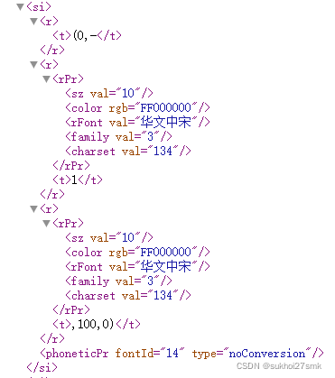 能正常读取的字段在sharedString.xml中存储的格式有差异,取其中一个字段,如下图: