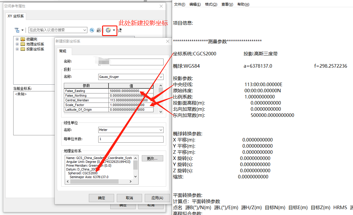 通过原始文件发现,arcgis中并没有中央经线是113的CGS2000投影坐标,所以此处需要进行自定义投影转换
