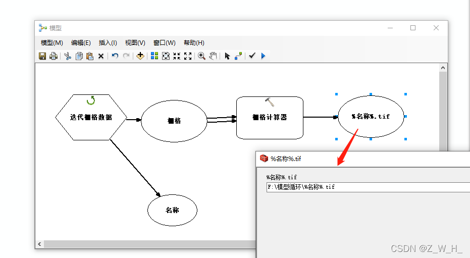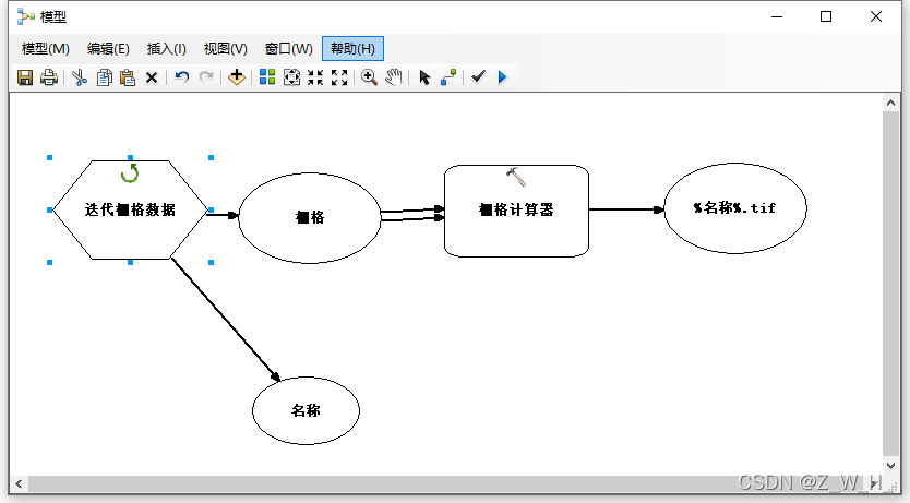 在arcgis的工具箱中新建一个模型,具体模型如下