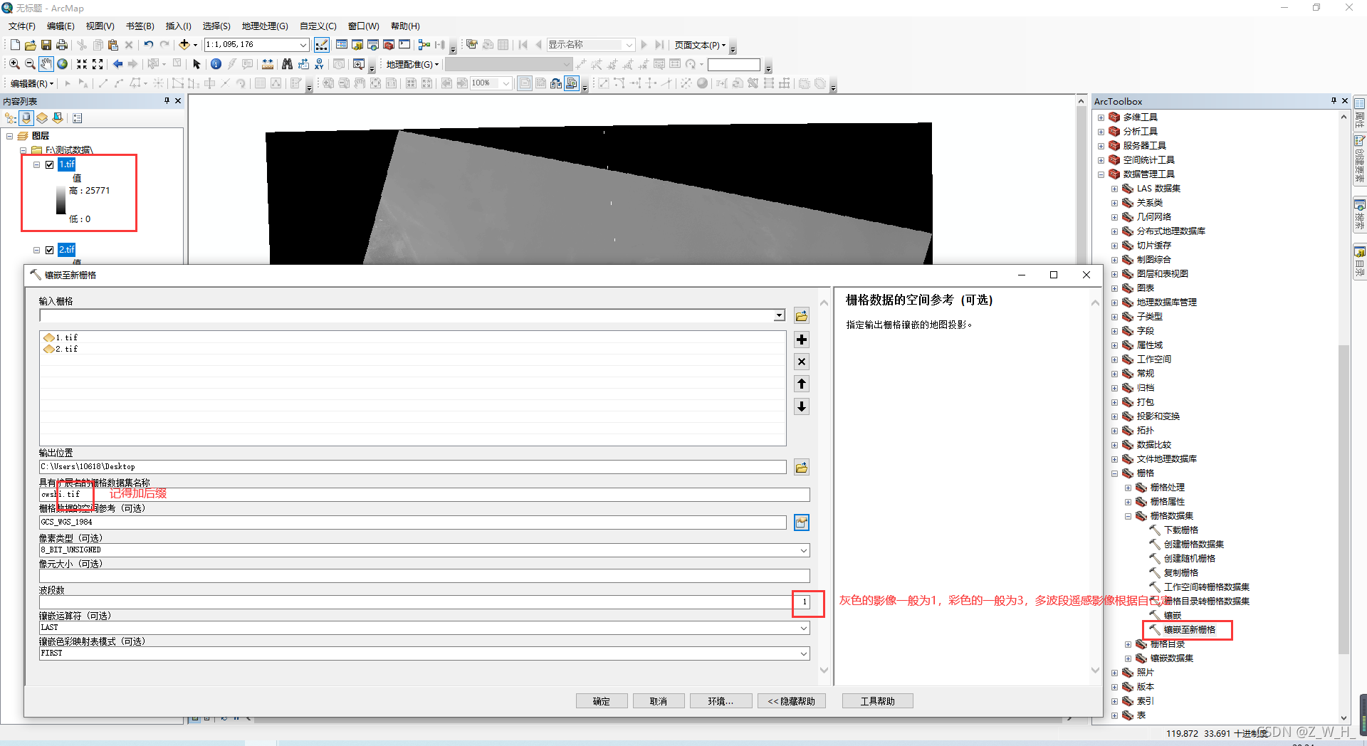 2、镶嵌至新栅格