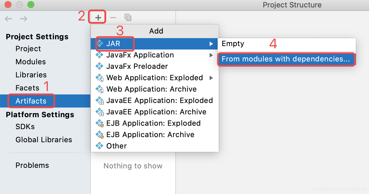 (3)现在开始打jar包,选中要打包的module按如下图所示操作: