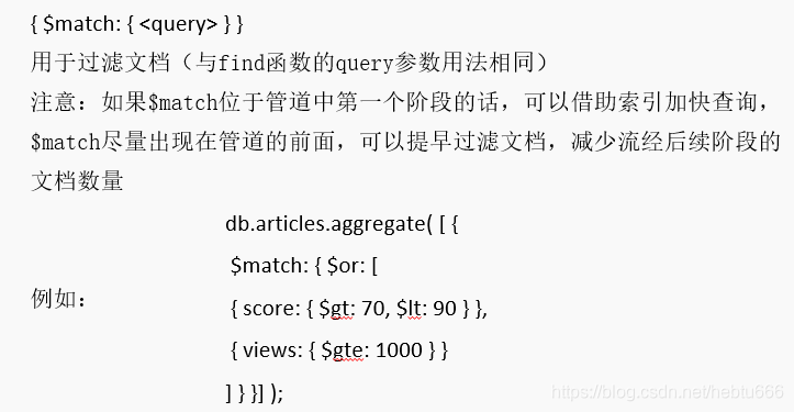 - 聚合管道的作用:对文档进行过滤筛选符合条件的文档;对文档进行变换,改变文档输出格式