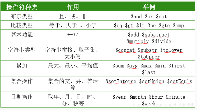 - $group:例如:db.books.aggregate( [ { $group : { _id : "$author", books: { $push: "$title" } } } ] )