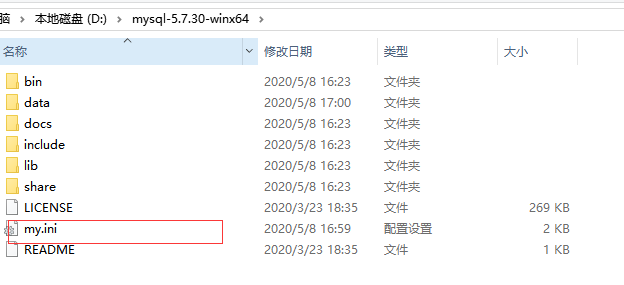 datadir="D:/mysql-5.7.30-winx64/data/"