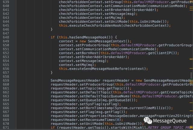 上面两幅图是Rocket开源版本中发送相关的一些代码,私以为这段代码非常的不优雅,读起来特别累,特别是requestHeader的各种属性设置。