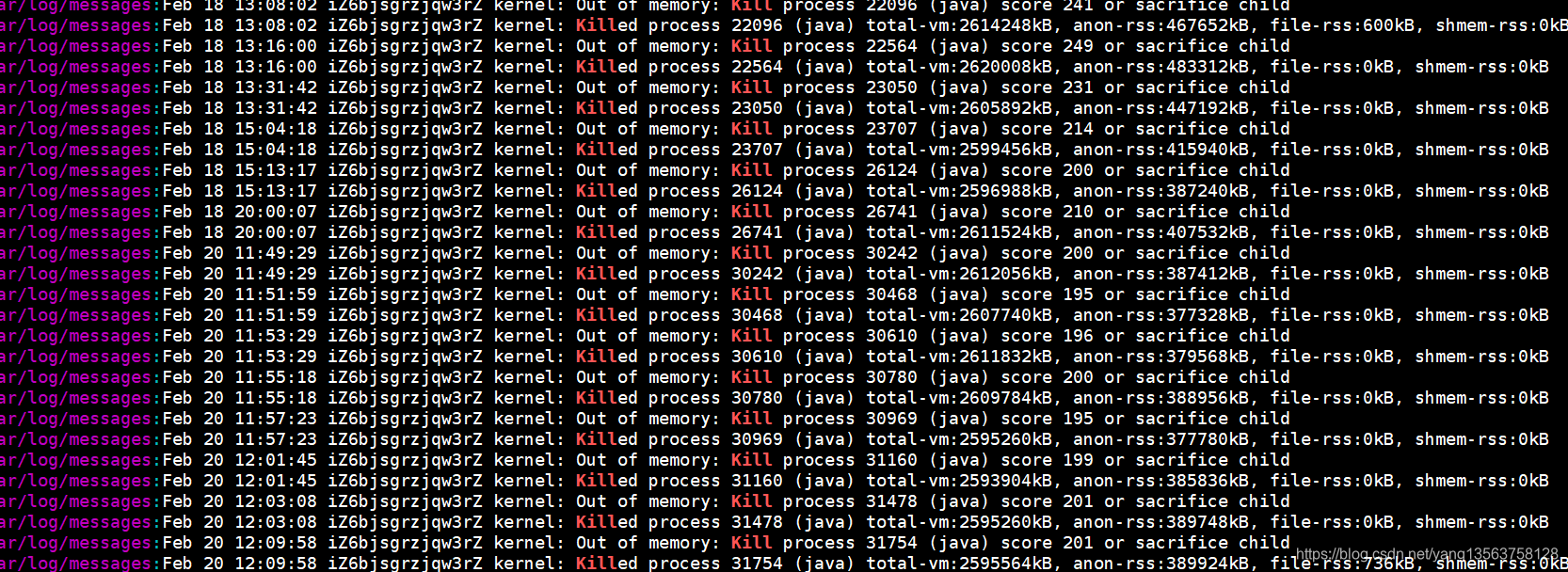出现如图所示,就说明内存机制自动清除tomcat进程。内存不足产生溢出。