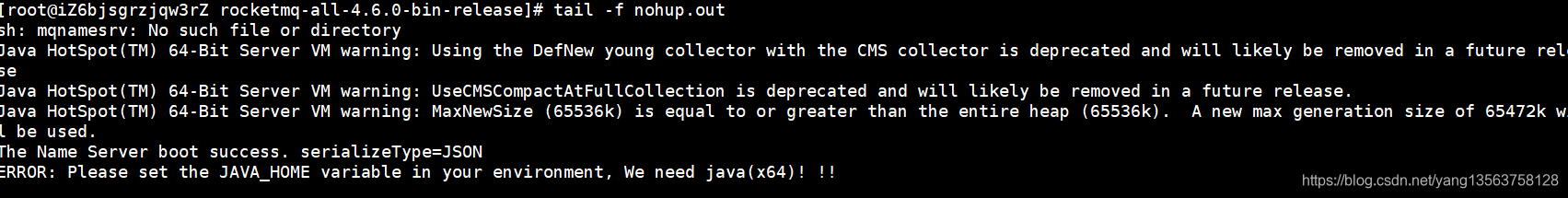 nohup sh bin/mqnamesrv &