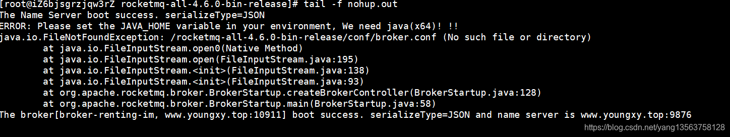 QUESTION:RocketMQ:Linux下启动server和broker的命令?