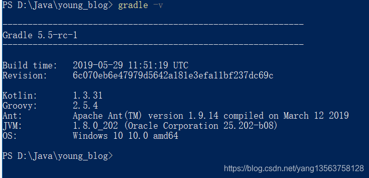 打开一个新的cmd命令窗口或者powershell或者其他命令行工具(比如cmder),输入命令gradle -v,如果出现类似下面的消息,则说明配置成功。