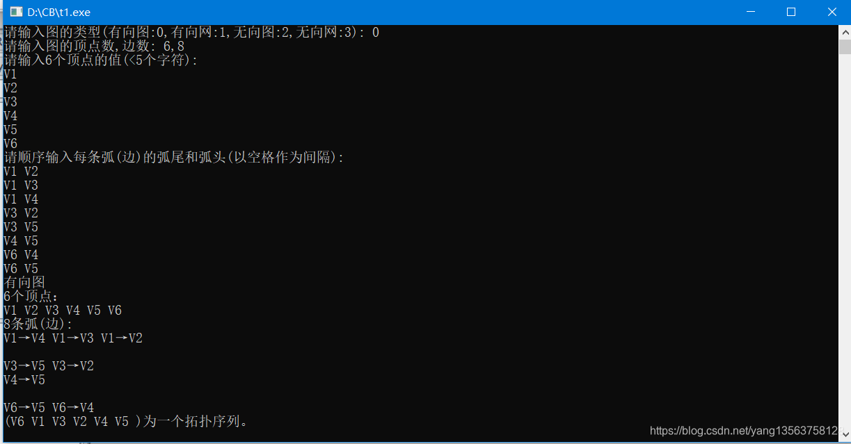 最终得到的拓扑序列:V1-V6-V4-V3-V2-V5