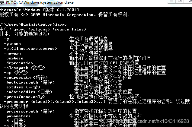 之后,输入javac就会出现我们想要的画面了。