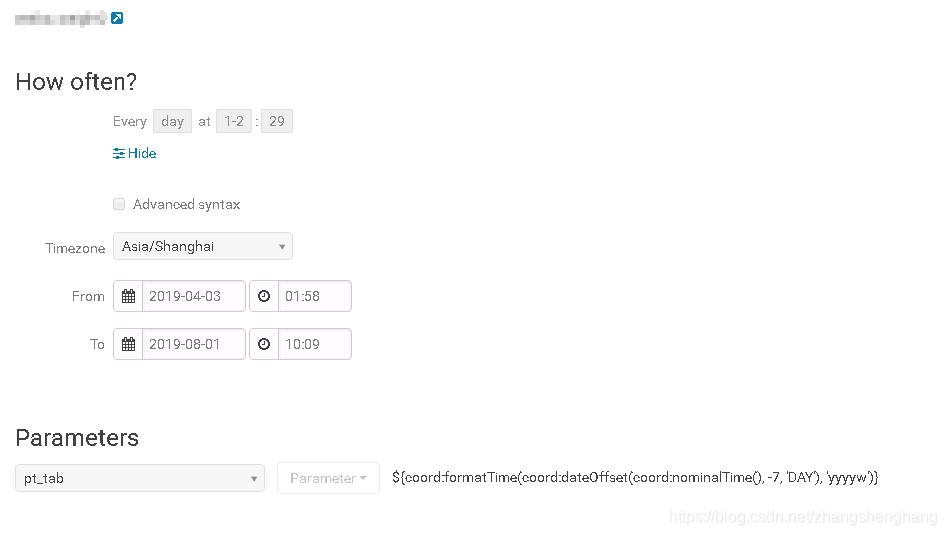 | ${coord:endOfMonths(1)} | 返回日期时间:从当月的最晚时间开始(即下个月初),周期执行n * 24 * 60分钟 |