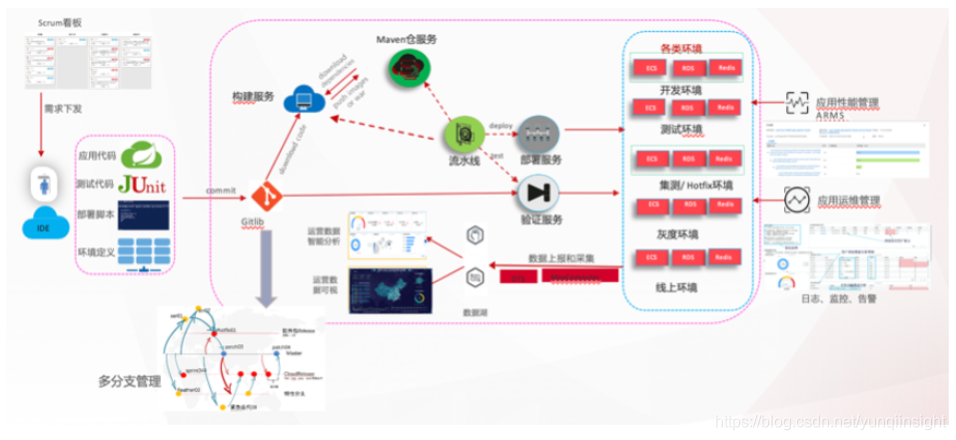 基于从 git 的源码管理平台和配置管理平台的联动,实现了容器镜像的快速自动生成和管理,基于环境变量的区分和配置中心的统一管控,能实现一个容器镜像多环境部署模式,并且能对每次的代码进行安全和一致性扫描,保障代码环节的安全稳定。