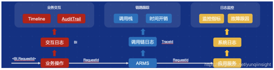 为此,畅捷通实现了一套机制,将业务操作按照 Timeline 进行抽象建模,并结合系统日志、阿里云 ARMS 系统形成三位一体的全链路跟踪机制。