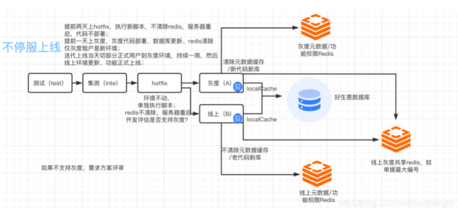灰度环境包括数据库灰度和应用程序的灰度。若在数据库层面支持灰度,则需要新建一个灰度 DB ,把参与灰度的客户数据导入到灰度 DB 中,灰度结束后再把数据清洗合并到正式生产 DB 中。这个过程所需操作较多且成本较高,鉴于此,数据库层面不考虑灰度。基于这个设定,需要遵循以下几个约束:
