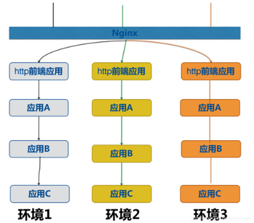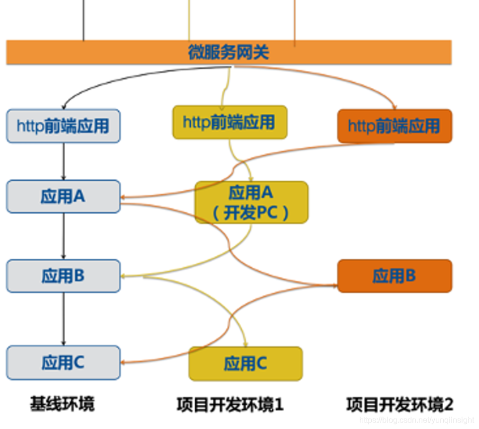 研发效率方面:当上百人的开发人员共享一套环境,开发态的代码频繁变更,质量较低,服务之间相互影响,开发环境经常中断,调试困难,严重影响了开发效率,研发希望每个项目能提供一套环境,如图:
