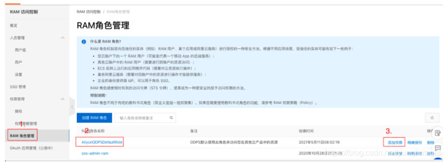 2.搜索框搜索odps使用访问oss的角色AliyunODPSDefaultRole