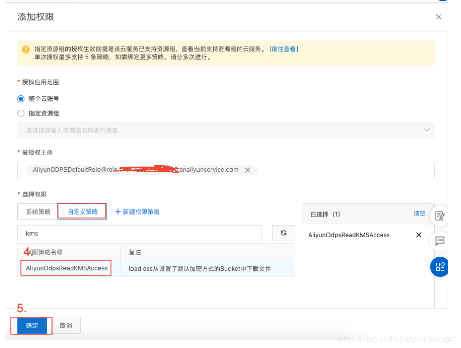 二.由于OSS数据设置KMS加密,所以需要目标Bucket的文件访问权限。