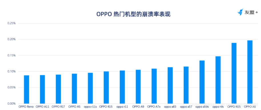 OPPO 热门机型整体崩溃率均在 0.20% 以下,其中 OPPO A5 和 OPPO R15 机型接近 0.20%
