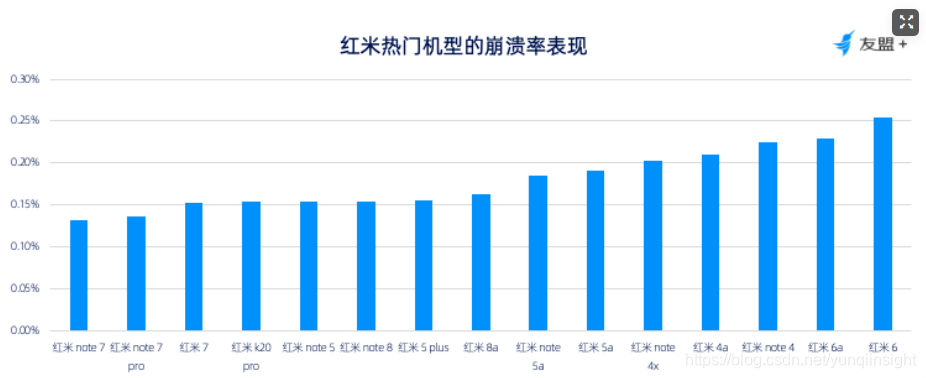 红米热门机型中,崩溃率最高为红米6,最低为红米note 7