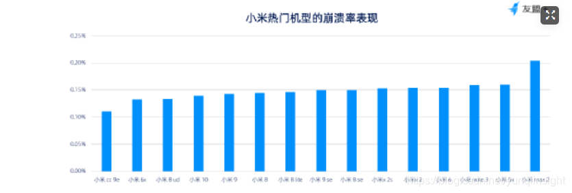 红米手机的平均崩溃率为 0.16%,在其热门机型中,红米6的崩溃率最高(0.25%),最低的为红米note 7(0.13%)
