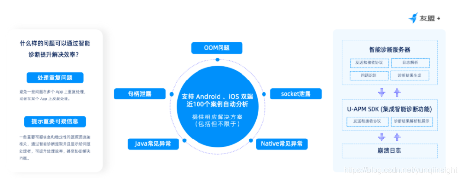 2020年,友盟+原移动分析U-App错误分析模块正式升级为U-APM应用性能监控平台。提供端到端的性能采集、监控和分析能力,帮助互联网企业开发者深入了解应用性能和稳定性,高效定位问题和提升应用体验。