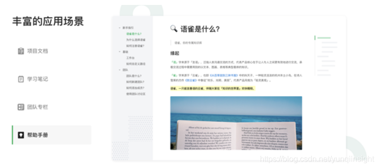 知识文档管理方面,语雀支持结构化知识归档管理,通过文档大纲,自动生成文档要点,使用知识库目录编排,让多篇文档结构化,形成一本本像书一样清晰易读的知识库。