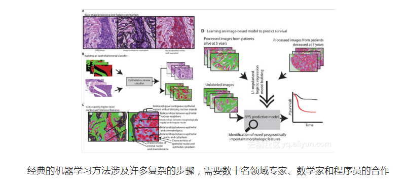 如果你想解决更复杂的问题,如通过MRI扫描检测乳腺癌,那么创建特征将变得更具挑战性。霍华德说:“你将需要数十名领域专家与数十名计算机程序员和数学家合作,提出这些功能概念并对其进行编程。最后使用一个经典的机器学习模型,如逻辑回归。”这项工作大概需要数年的工作。