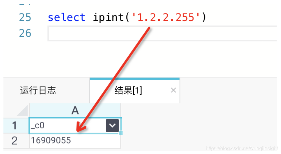 通过编写Python UDF将点号分割的IP地址转化为int类型的IP。详细如下: