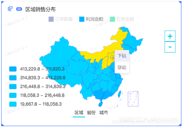 图表的相应区域即可进行下钻交互。不再需要打开“更多设置”的界面。