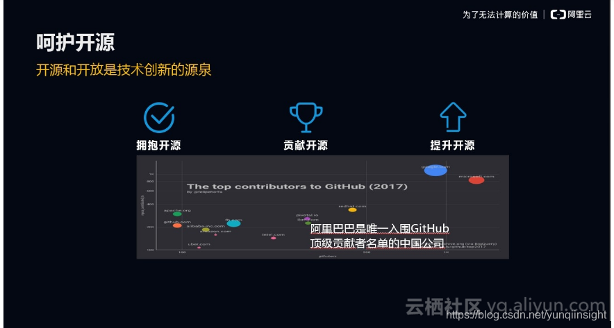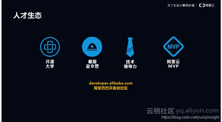此外,陈绪博士还从开放API、开源生态、人才生态、行业赋能等方面详述了阿里云打造开放技术生态的构建支点。
