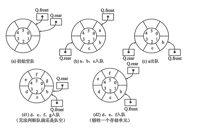 这时,判断队列满或者空的时候就不能单纯看rear和front指针的大小了。