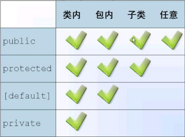 (注:访问控制修饰符可以修饰类,成员变量,方法,但是修饰类只用public和default)